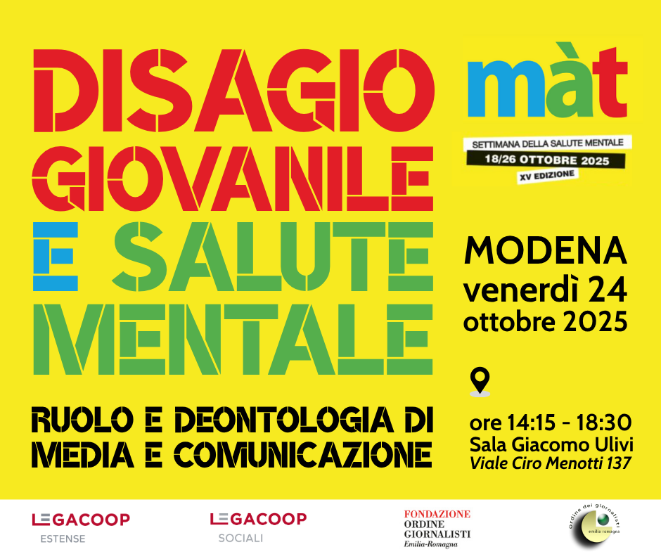 Disagio giovanile e salute mentale: Legacoop e Ordine dei Giornalisti E-R organizzano un seminario formativo a MàT 9 Ottobre 2025