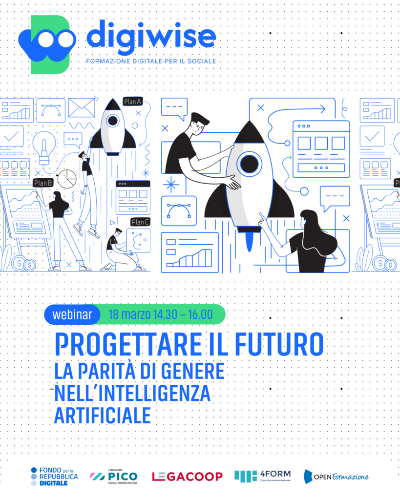 Nel corso del webinar verrà inoltre presentato in anteprima il corso di formazione gratuita “Coo.De – Parità di genere e IA”, in partenza il 13 aprile. La partecipazione al webinar non comporta l’iscrizione al corso formativo.