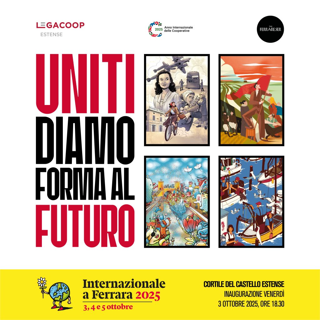 Chiara Bertelli, direttrice di Legacoop Estense, specifica che il sostegno al festival nasce dalla convinzione che “Internazionale sia da sempre garanzia di informazione professionale di qualità, un presidio di democrazia che va sostenuto soprattutto in tempi complessi come quelli che viviamo. Il 2025 è l’Anno Internazionale delle Cooperative, proclamato dall’ONU per celebrare il contributo delle cooperative per costruire un mondo migliore, sotto il profilo economico, sociale e ambientale. Per questa occasione, contribuiamo al festival proponendo, grazie anche al contributo di Assicoop Modena&Ferrara, la mostra di illustrazioni “Uniti diamo forma al futuro”, con cui raccontiamo storie di cooperazione tra Modena e Ferrara, attraverso illustrazioni e racconti che ci accompagnano in un viaggio tra memoria e innovazione. Una bella occasione, per cittadini e turisti, di scoprire luoghi, persone, aneddoti ed esperienze, in cui eccellenze imprenditoriali si intrecciano alle vicende del nostro territorio. Grazie alla creatività di artisti e autori del territorio, omaggiamo la nostra storia e guardiamo al futuro, per ispirare nuove generazioni su valori antichi ma quanto mai attuali”.